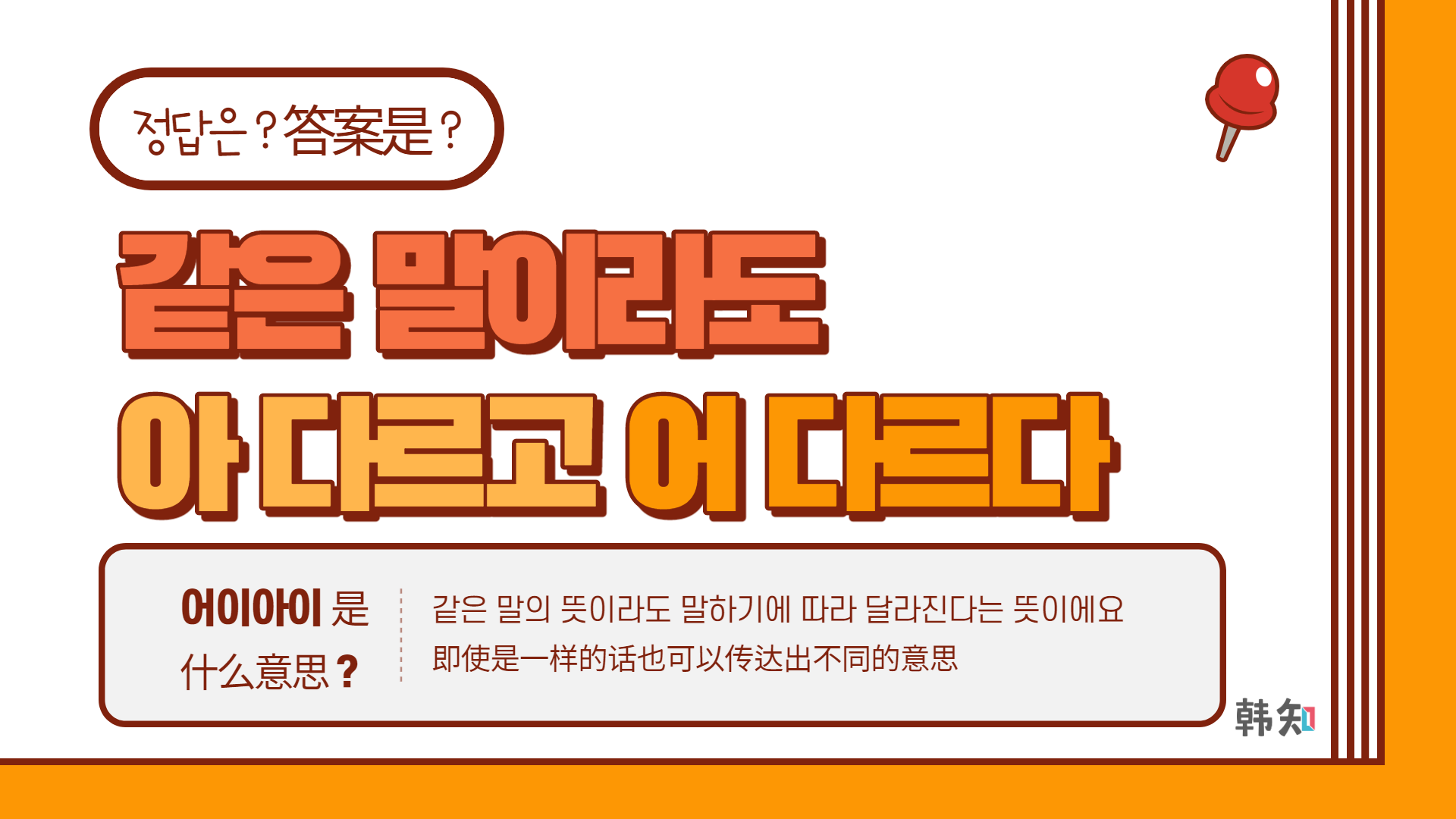 - 같은 말이라도 어 다르고 아 다르다