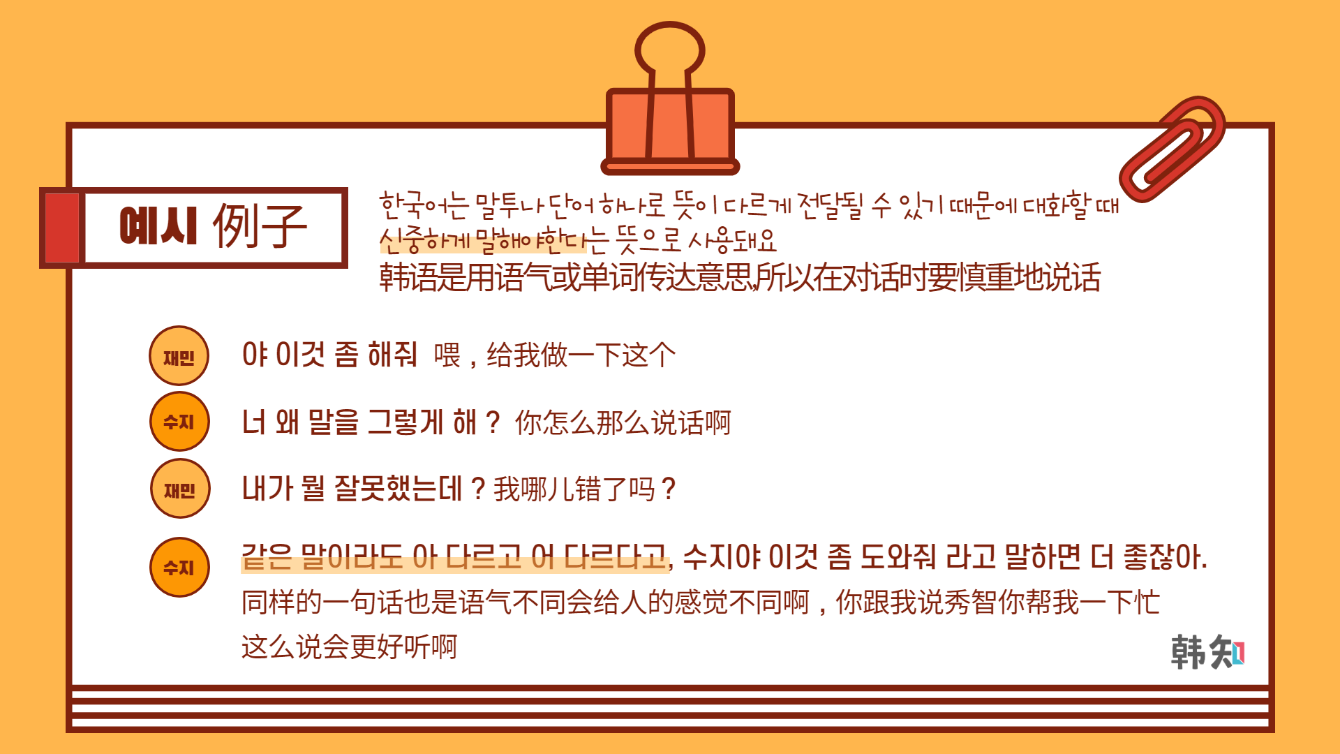한국어는 말투나 단어 하나로 뜻이